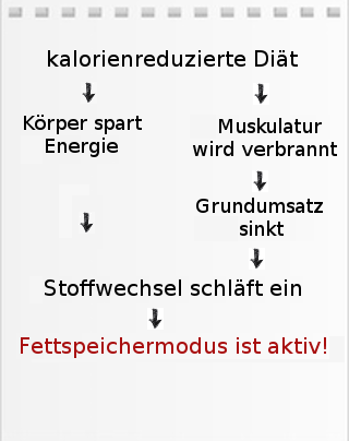 Daraufhin sinkt dein Stoffwechsel enorm, weil er natürlich Energie sparen muss wenn zu wenig Nahrung vorhanden ist! Du verbrennst also viel weniger Fett mit Radikaldiäten!